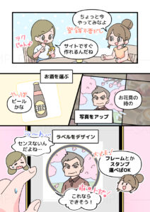 オリジナルギフト作成サービス「スナップリカー」の使い方や魅力を直感的に伝える漫画を制作しました。HPに掲載し、サービスのご利用シーンを直感的に紹介しています。